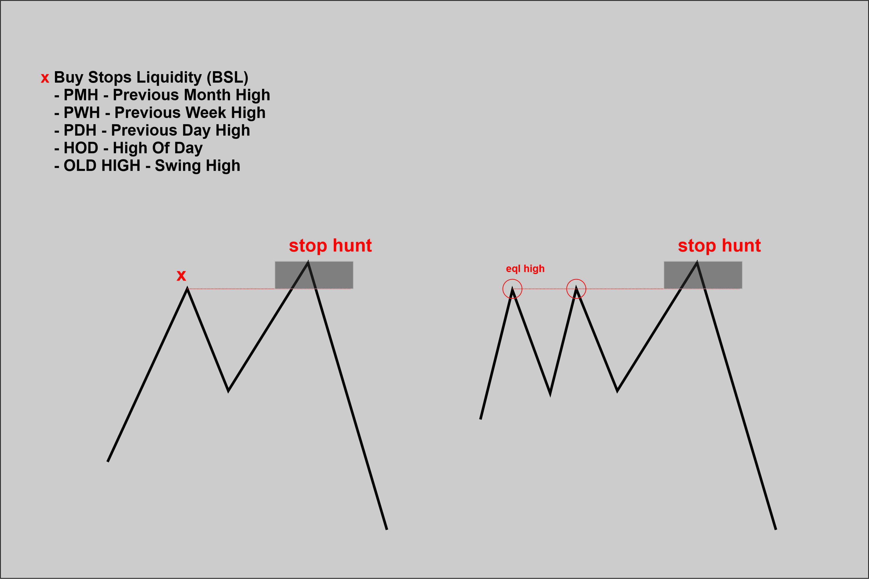 Di Forex terdapat 2 jenis likuiditas:1. Buy Stops Liquidity (BSL)