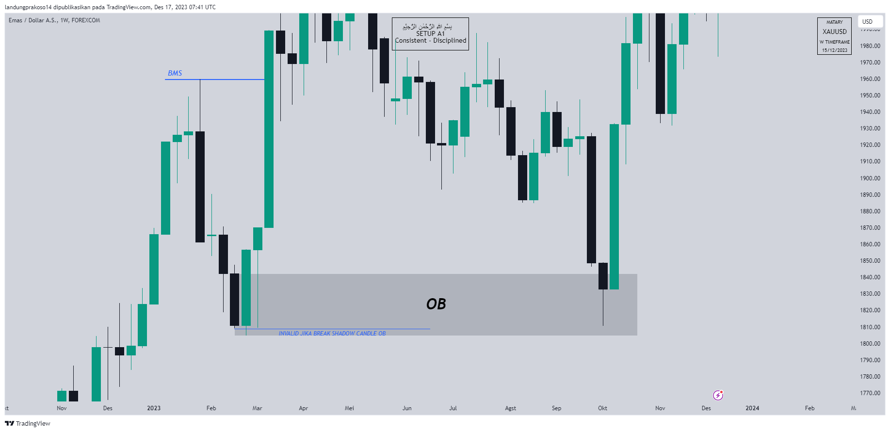 Untuk entri setelah BMS H1, tunggu harga di zona blok rejection yang telah di-marking