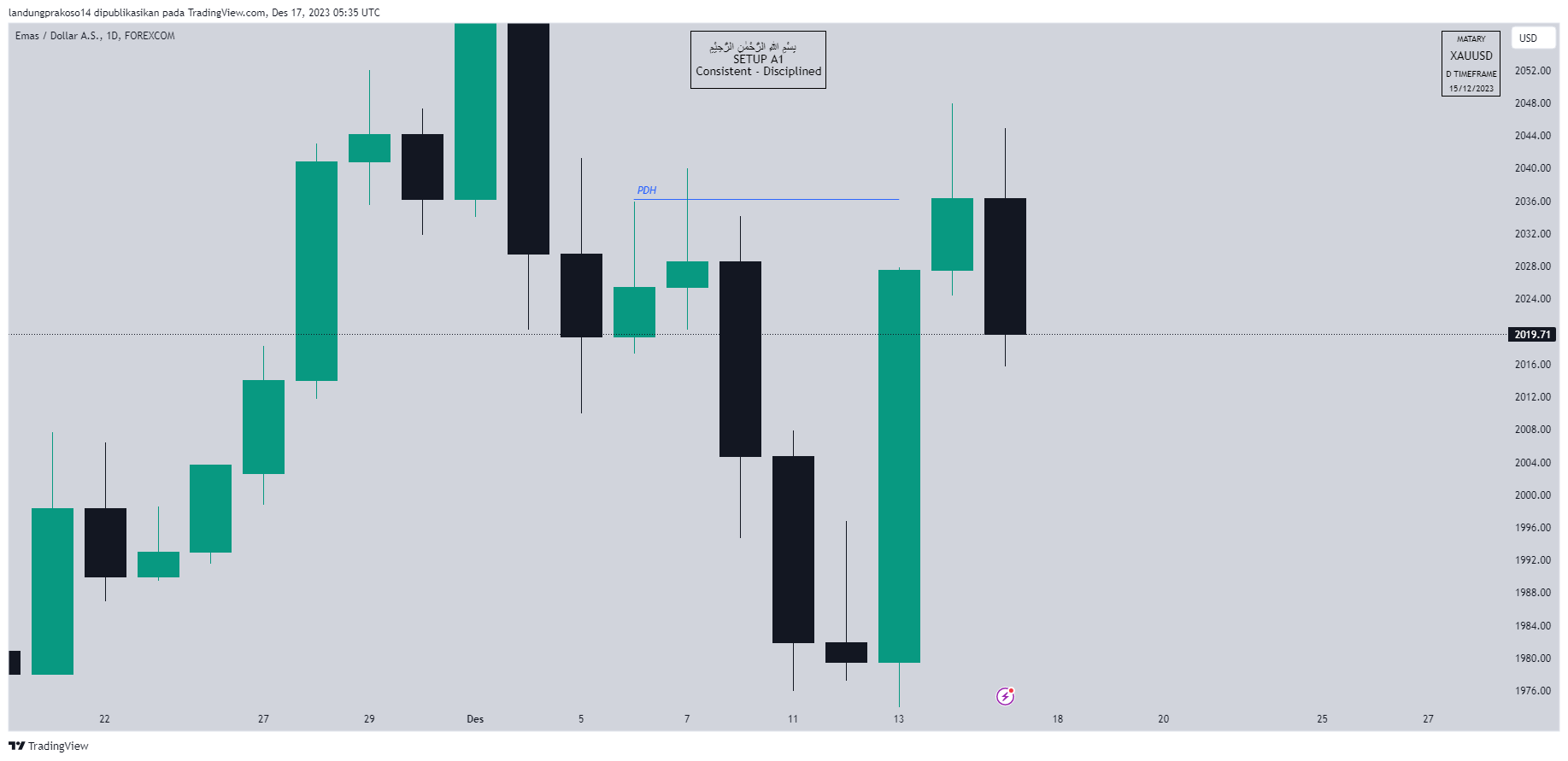 Mencari peluang entri Sell di atas swing high daily sebelumnya dan Buy di bawah daily sebelumnya.