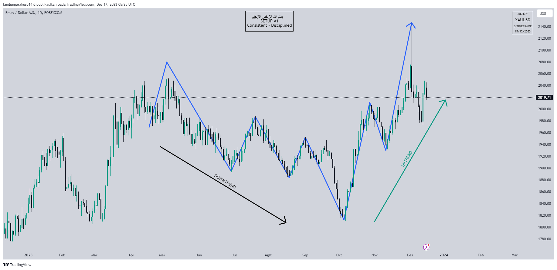 Ciri-ciri:Pada fase ini, setiap puncak baru (Higher High) dan lembah baru (Higher Low) berada pada tingkat yang lebih tinggi dibandingkan dengan yang sebelumnya.